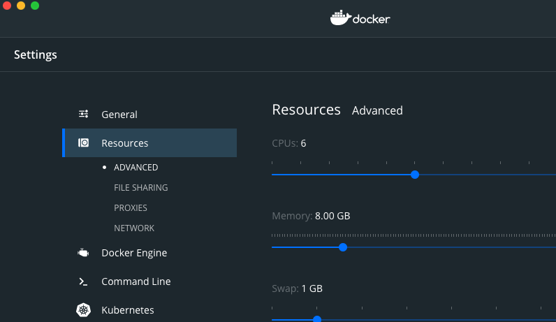 * above screenshot is provided for Docker for Mac, options for other Docker distributions may vary -